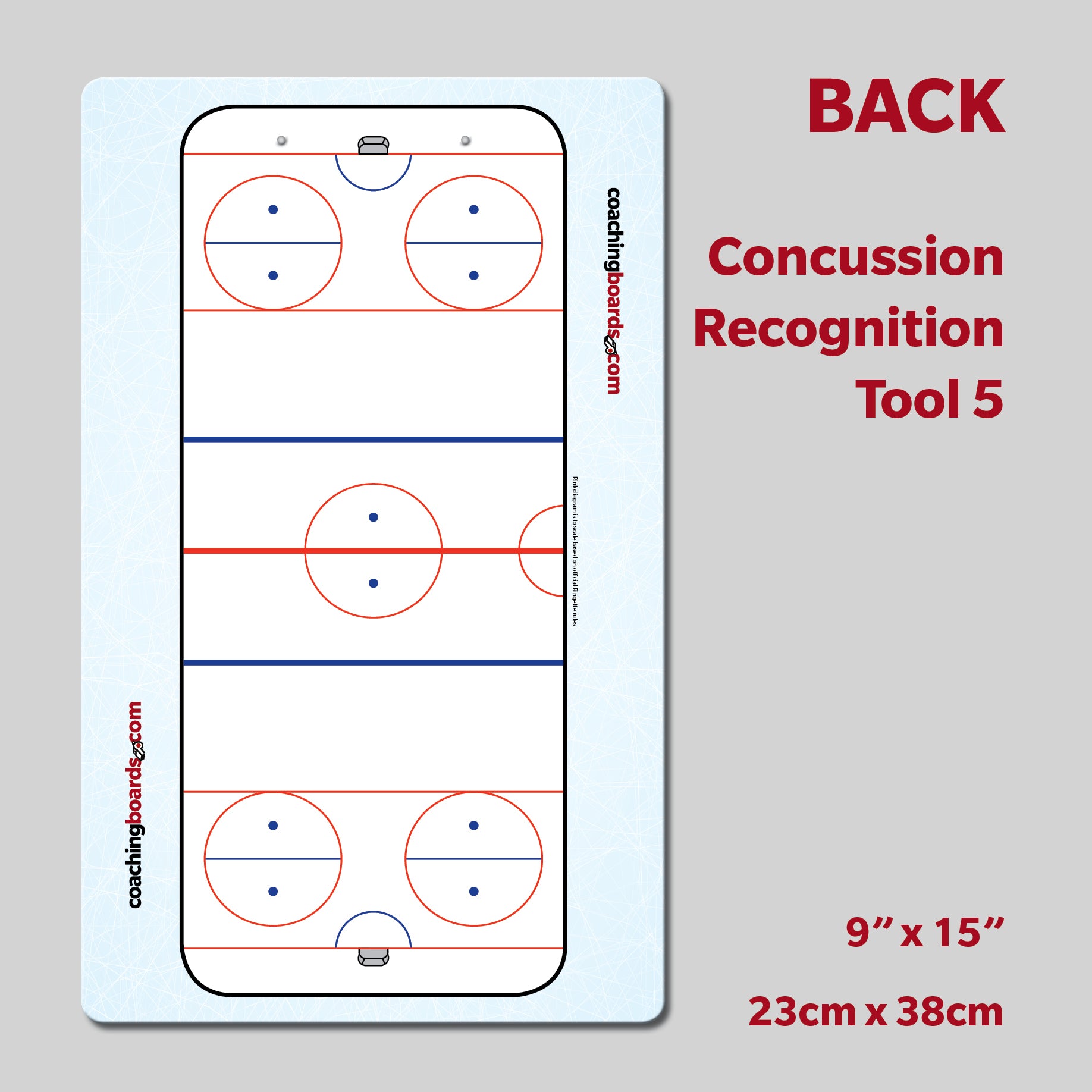 - Front of board has the "Concussion Recognition Tool 5" as published by the British Journal of Sports Medicine